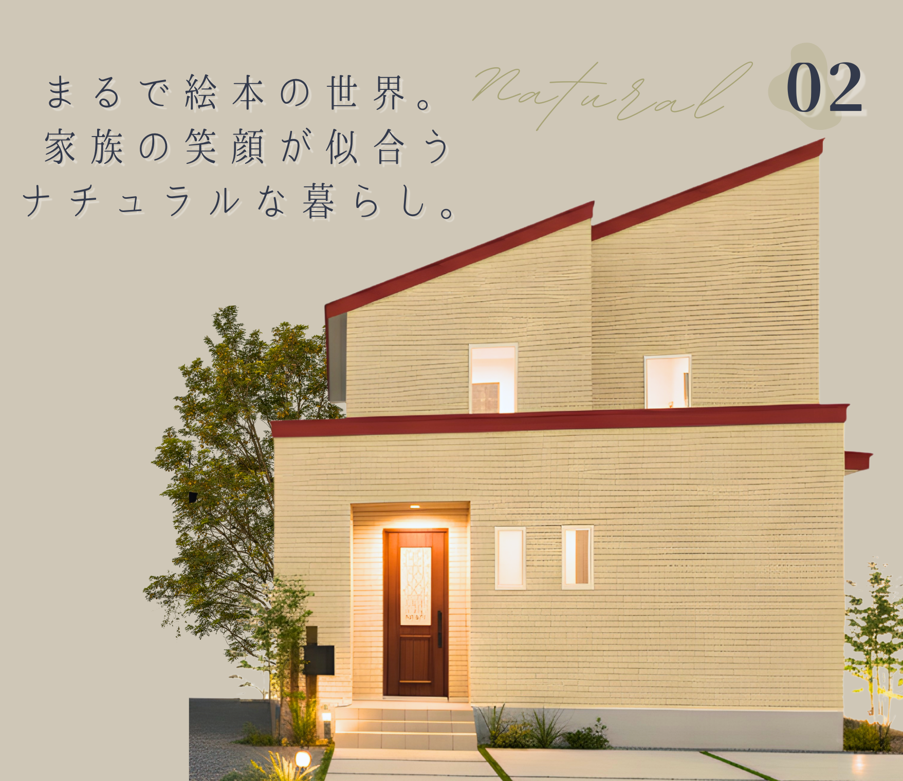 クリーム色の外壁に赤い屋根が映える、異国感あふれるデザイン。内装もホワイトやナチュラルカラーを基調に、やさしい雰囲気で統一。
