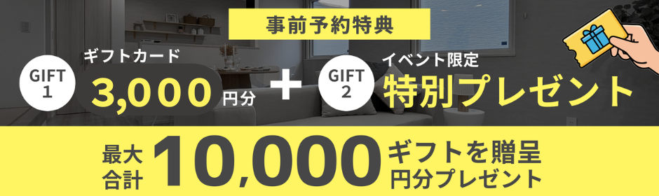 ※ギフトのお渡しは初回来場時に新築住宅のご説明をお聞きいただき、次回ご来場時となります。