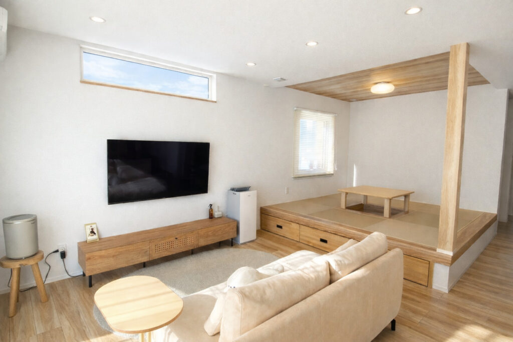 リビングとなりの和室スペースは使いかた無限大。お昼寝や休憩、子供の遊びスペースにも。