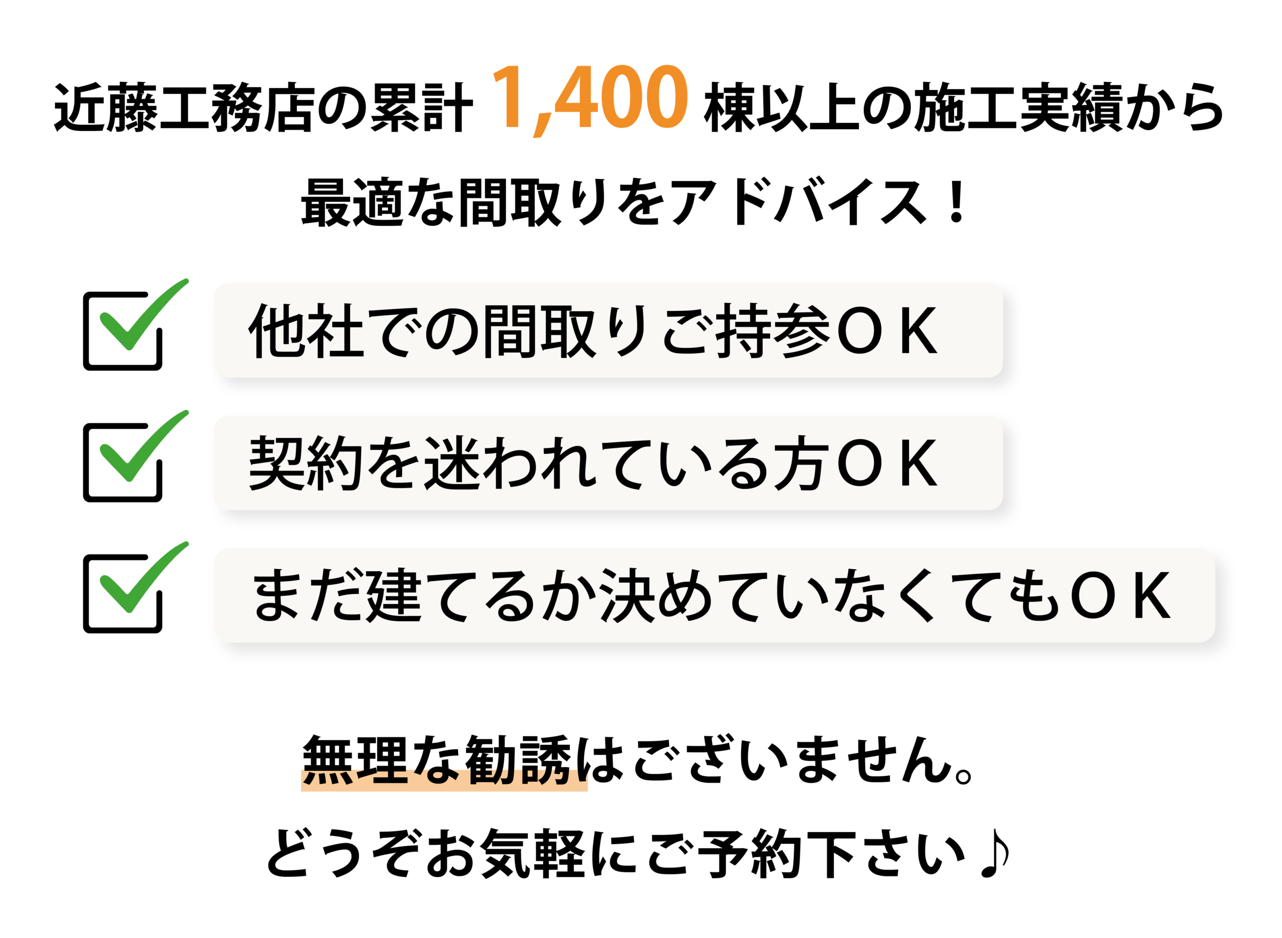 イベント・キャンペーンのプレゼントは、1名様(1家族様)1回限りとさせていただきます。 未成年者様のみのご来場は対象外とさせて頂きます。 アンケートにご協力して頂く事が条件になります。 当社からの予約確認、確定のご連絡を以て受付完了とさせていただきます。また、当日のご来店予約については、直接ご連絡いただきますようご協力お願いいたします。ご予約無しでもご来店頂けますが、担当者が不在の場合がございますので、予めご了承ください。 1年以内に弊社施工エリア内にて新築住宅をご検討されている方に限ります。