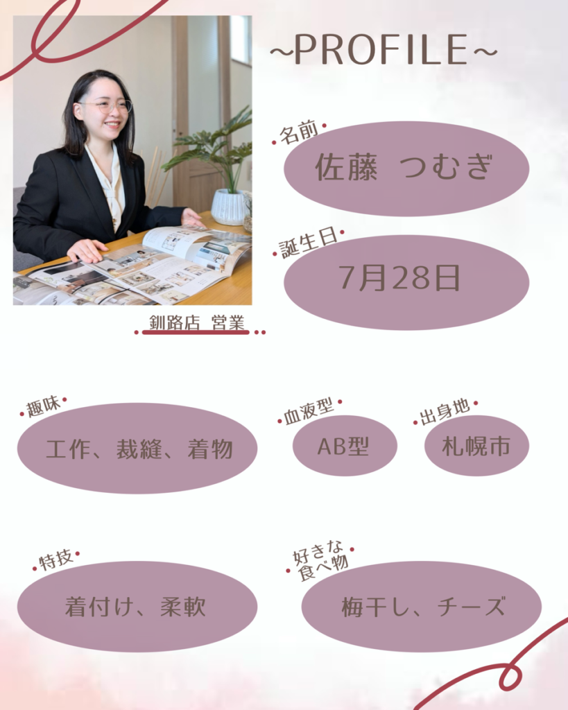 改めまして、2025年10月に新卒入社した、釧路店 新築営業担当の佐藤つむぎです。